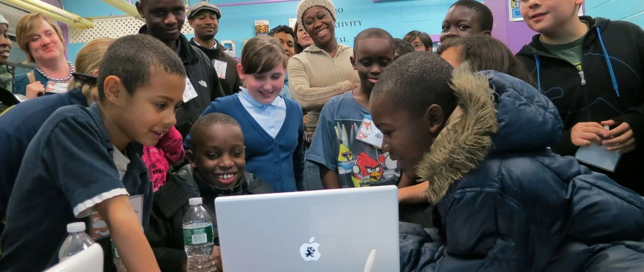 Families participate in a series of four to five 2-hour workshops. Every workshop has four parts: Eat, Meet, Make, Share. We begin with a shared meal. Then facilitators check in with kids and adult caregivers before engaging families in a collaborative design activity, using Scratch and MaKey MaKey or ScratchJr, that centers their family interests and stories. With these creative technologies, families learn to not only use new technologies, but also create their own technologies. The workshop series culminates in a showcase night for families to share their projects to the whole community.